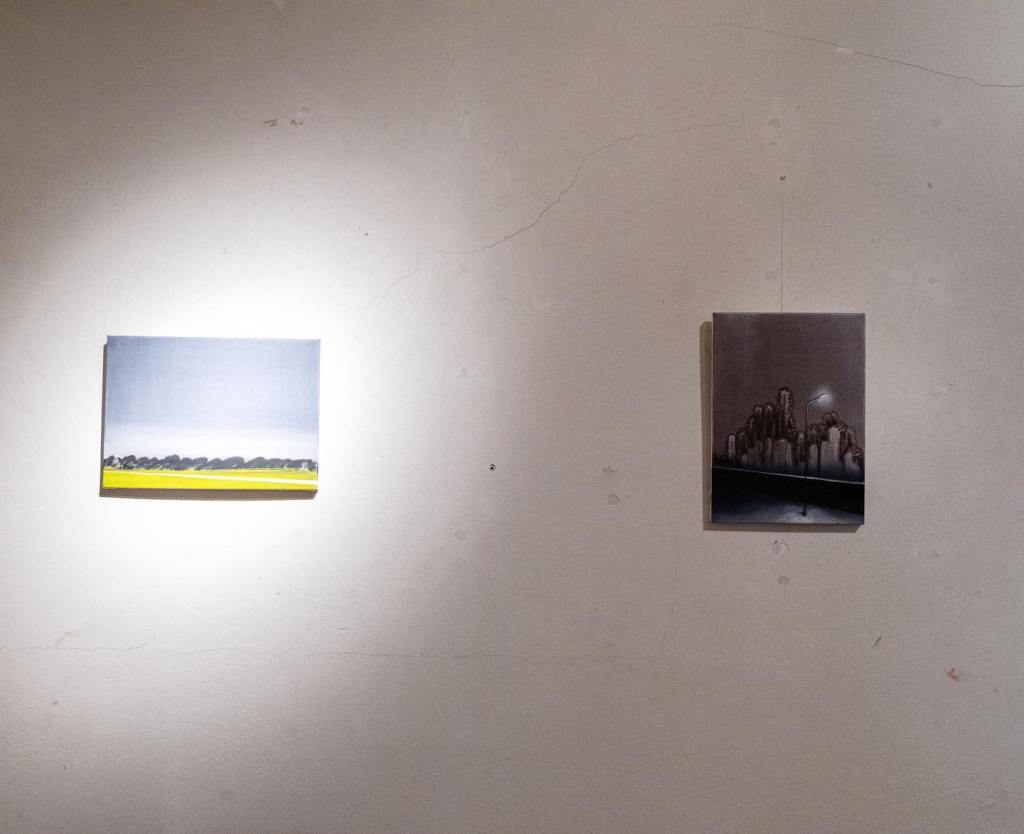 Nei paesaggi di Martino Neri invece la luce è come una musica che sposta e plasma la materia, camminando per le sue vie apparentemente senza fine, troviamo cieli sconfinati che sovrastano stiracchiando il paesaggio e come antenne radio dei lampioni freddi, ronzanti, sembrano aprire varchi su altre dimensioni o scuotere il velo della fragile struttura della nostra realtà.